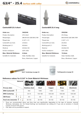 G3/4“ Centertap on page 54 Parting paste on page 60