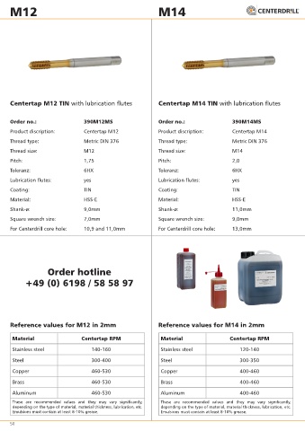 Centertap M12 TIN with lubrication flutes Centertap M14 TIN with lubrication flutes