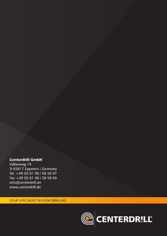 Centerdrill GmbH Valterweg 19 D-65817 Eppstein / Germany Tel. +49 (0) 61 98 / 58 58 97 Fax +49 (0) 61 98 / 58 58 99 info@centerdrill.de www.centerdrill.de YOUR SPECIALIST IN FLOW DRILLING